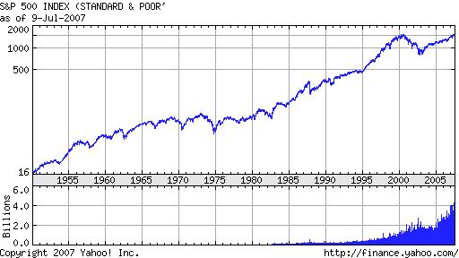 一九九五年,AT&T 走到了一个分水岭。从一九九四年起,美国经济全面复苏,从下面斯坦普 500 指数走向图中可以看出,美国股市从 1995 年起开始暴涨,直到两千年底。
