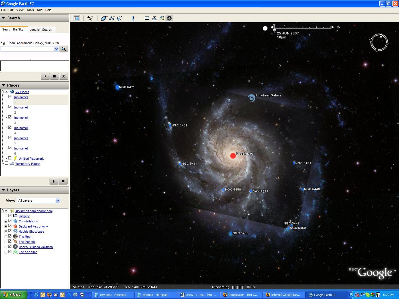 我自始自终都热爱着天文,我和谷歌的工程师一起作了一个视频,把它放在了"Google Earth"的"星际"模式下。我甚至把收集到的我非常喜欢的太阳系外的其他景象做成了 KML 的展示(我们研究所的其他成员和谷歌的工程师们也帮了不少忙),其中有星星的诞生处——星云;有恒星爆炸后的残骸,甚至还有被行星环绕的一群"星星"!(遗憾的是,科学家们到现在都没有找到和地球类似的星球)