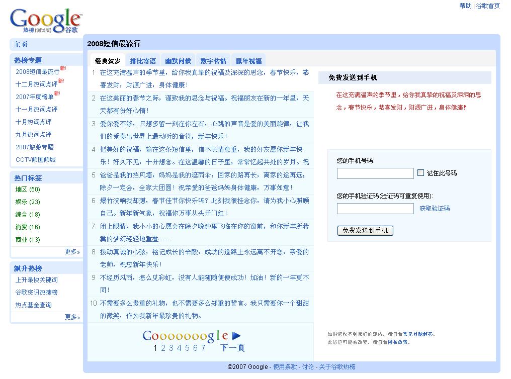 选条最适合的短信祝福你的朋友吧-- Google(谷歌)推出新年短信整合搜索