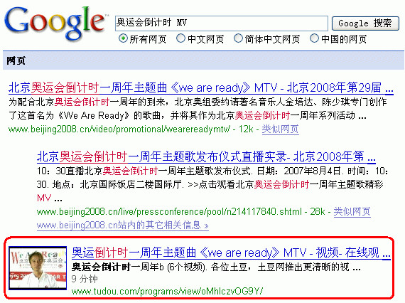 用网页搜索查视频 -- 从简单网页到多媒体信息深度整合