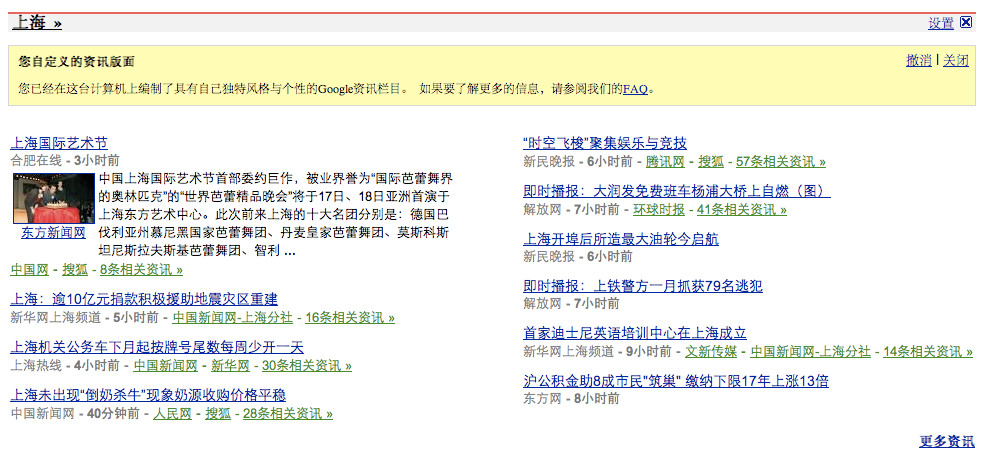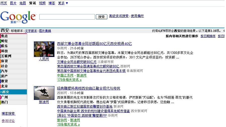 我是一个在北京工作的西安人,平日里除了大一统的国家大事,还想常常听听来自家乡的新变化以及自己今天生活所在地的家长里短。长期以来我们的资讯都是按照讨论的话题将他们分成财经、科技、体育等几类。通过用户调查,我们发现很多用户在关心国家大事的同时也很关心发生在自己周围的事情,有很多用户要求我们提供功能方便他们查找当地的资讯。经过几个月的努力,今天我们很高兴向大家介绍谷歌资讯的一项新功能:地区资讯。立刻定制了西安和北京两个地区的资讯:此时此刻,10 月 16 日,西安最关注的是文博会而北京市民最关注的是马拉松比赛。