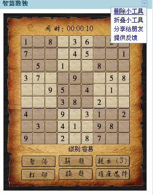 每个iGoogle小工具右侧都有下拉菜单,可以通过菜单中的“分享给朋友”,把你喜爱的工具与好友共享。学习工作之余不妨跟好友一起挑战智慧数独,来场脑力激荡.
