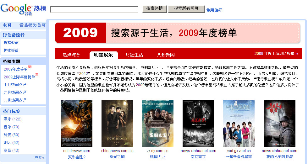 明星娱乐,小众趋势下的全民狂欢——谷歌中国发布2009年度明星娱乐榜