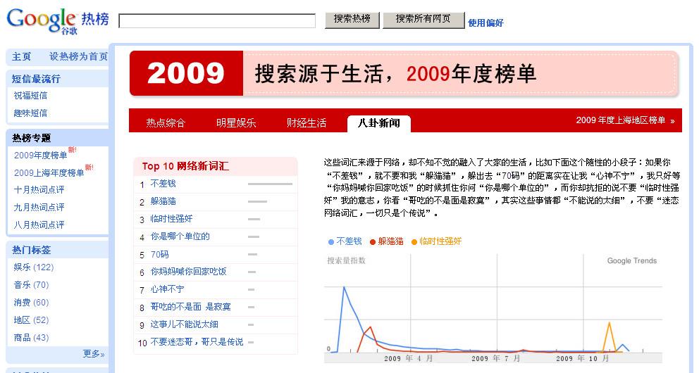网络流行语,不再只属于网络——谷歌中国发布2009年度八卦趣闻榜