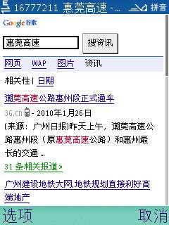 :在谷歌资讯(Google News)中键入“城市名+ 春运”或者高速公路名称,例如“沈大高速”或者“惠莞高速”就能得到目的地春运相关的最新资讯,了解某条高速公路的通行状况,根据实时情况,您可以随时调整行车路线,一切都变得简单!